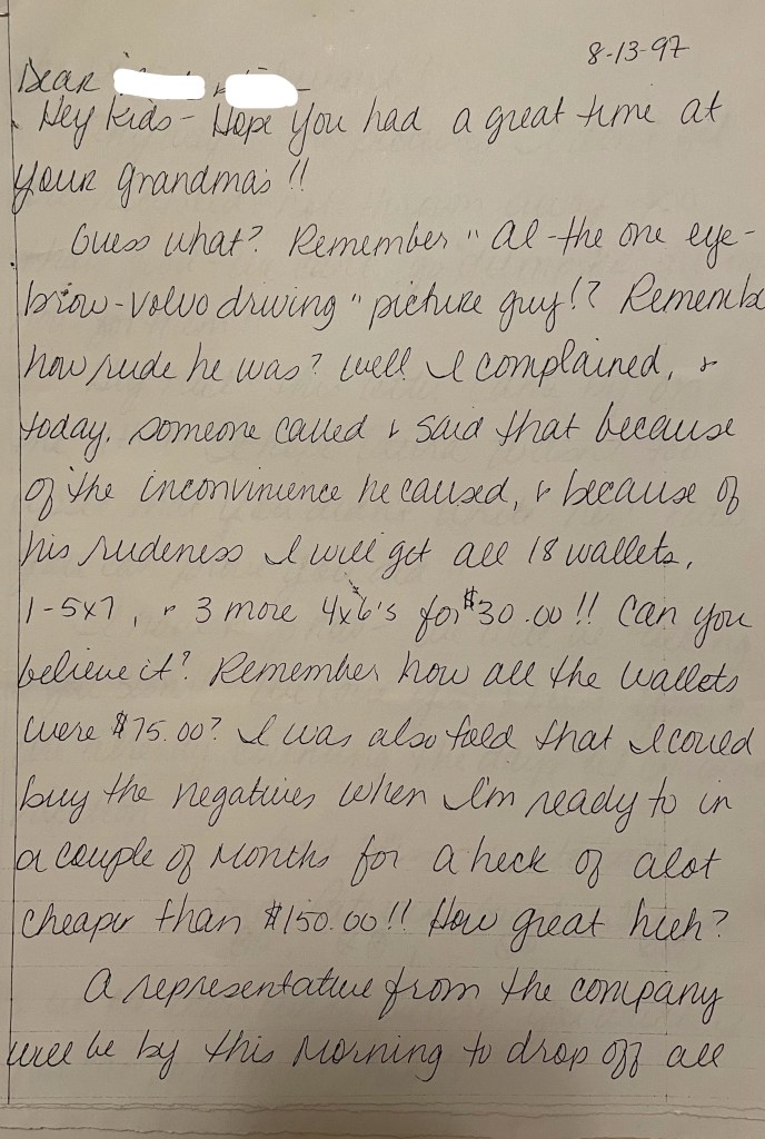 We had visitation with the kids from July 11th to August 16th. During this time, we had the kids pictures taken, all 4 of them. It was not a good experience, but I wrote the kids and told them what was going on with the pictures.