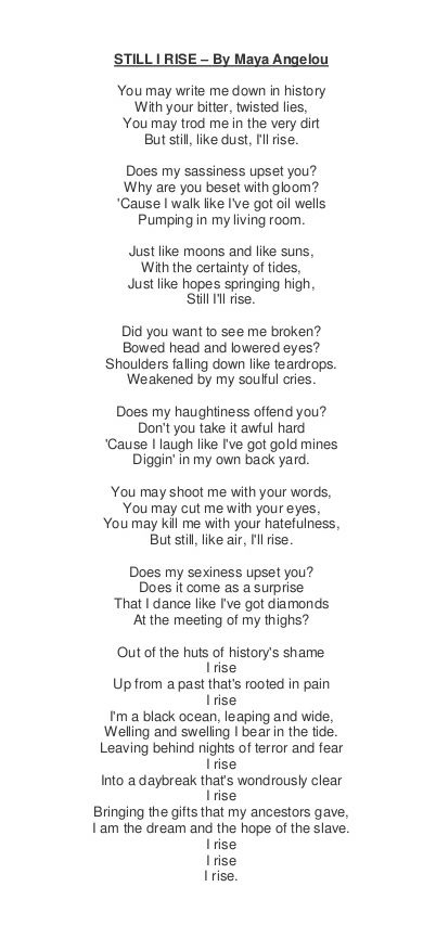 So when I read this poem by Maya Angelou, she was the first person I thought of. She tried bringing me down, but she didn’t. She couldn’t.