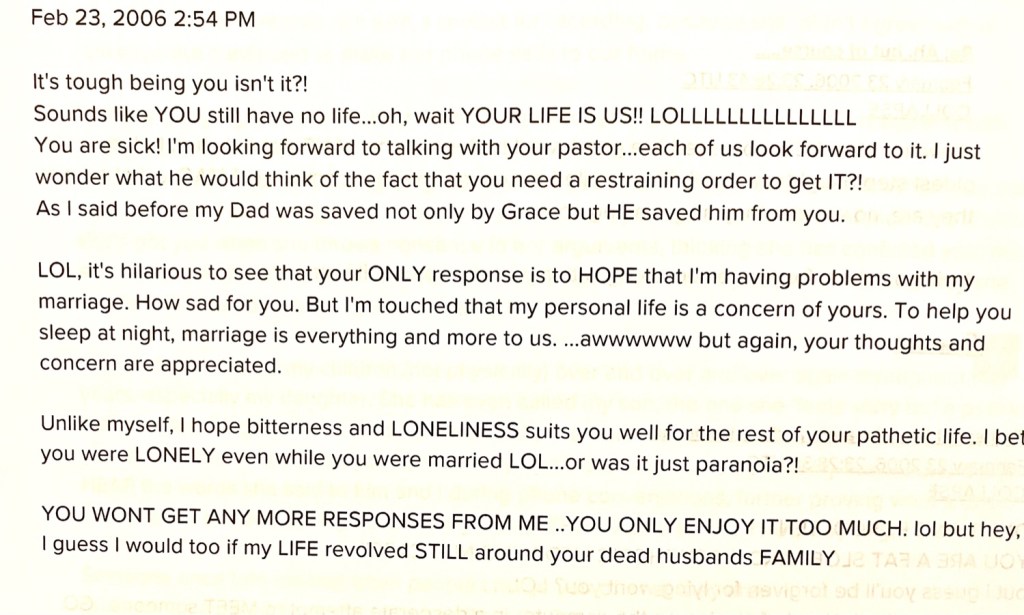 Well, you would be wrong about my first response to your email. In that email I said… Hey Mandy! Great to see you, pleasant as always, LOL…having a bad day are ya? trouble in paradise? Married life not what you thought it would be? Glad you FINALLY found someone to settle down with. I hope it lasts a lifetime for ya!