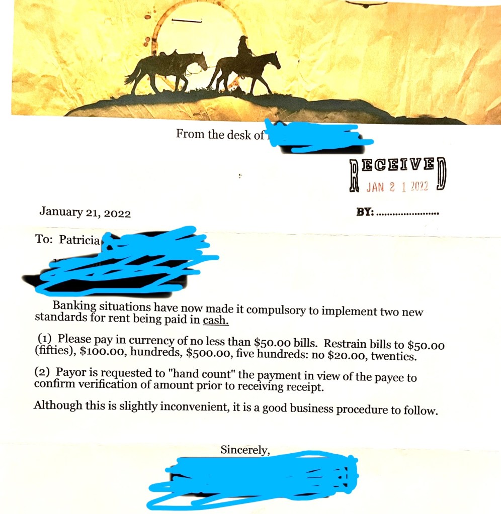 HELL, on January 21, 2022, he sent a letter to at least two of his tenants, me being one of them, stating that we can’t pay in $20 dollars anymore. He will accept increments of $50, $100, and $500. Shit, I’ll just share the letter: